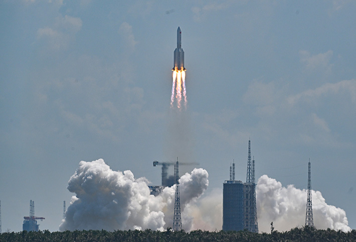 A rocket carrying a group of low Earth orbit satellites blasts off from the Wenchang Space Launch Site in south China’s Hainan Province on 13 August (XINHUA)