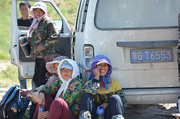 Locals taking part in a sandy land restoration programme rest in the shade of a vehicle in the Horqin Sandy Land in Tongliao, Inner Mongolia Autonomous Region (COURTESY)