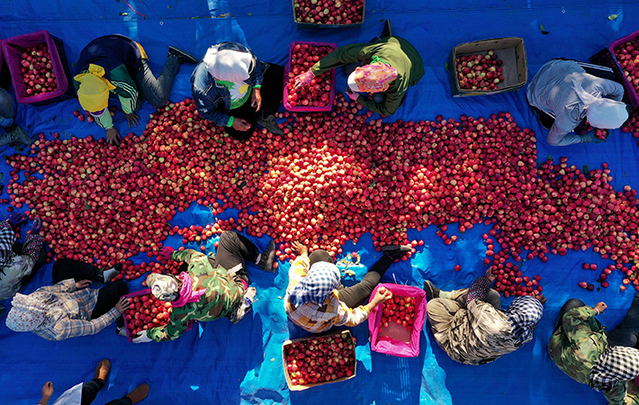 Farmers process apples in Tongliao, Inner Mongolia Autonomous Region (COURTESY)