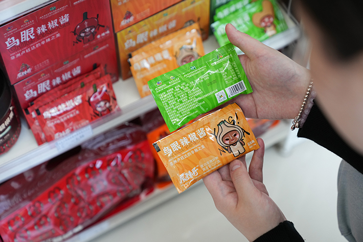 A customer selects chilli sauce made from Rwandan chilli peppers at a convenience store in Changsha, Hunan Province, on 6 June (XINHUA)