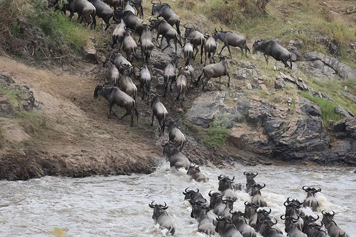 Wildebeest crossing a river during the Great Migration (LIU JIWEN)