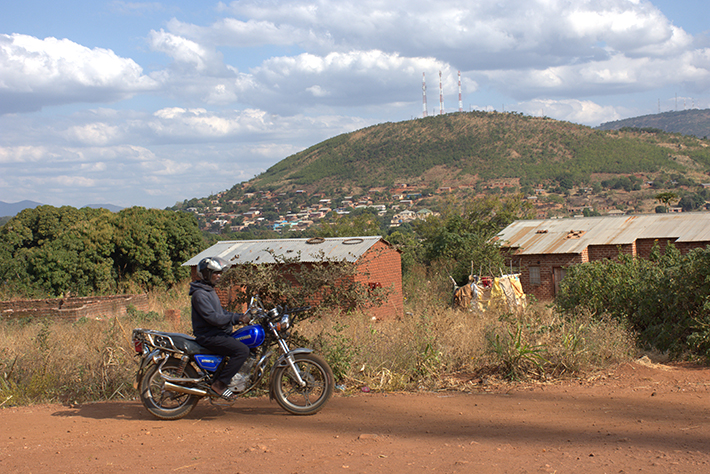 Joshua Mwanza rides his second hand Chinese motorbike to ferry passengers from Chipata town centre (COURTESY)