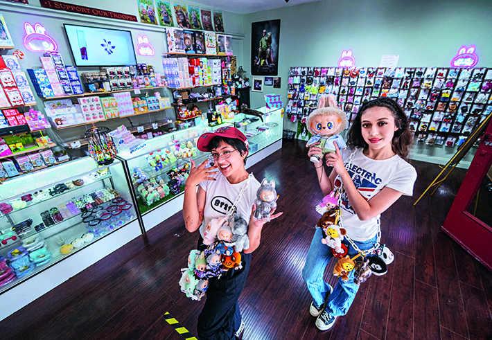 Two customers show off Labubu stuffed animals at the Labu’Tique Shop in Anaheim, US, on 25 June (VCG)
