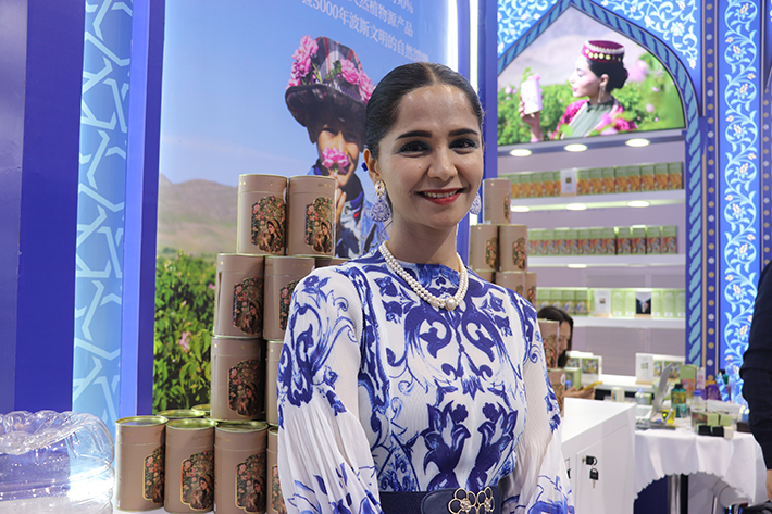 Elaheh Fazel, the brand’s ambassador from Iran, enthusiastically promoted the products to visitors in fluent Chinese. She likened the CIIE to the ancient Silk Road that once connected the two nations, describing it as a prime platform for showcasing Iran’s finest products.